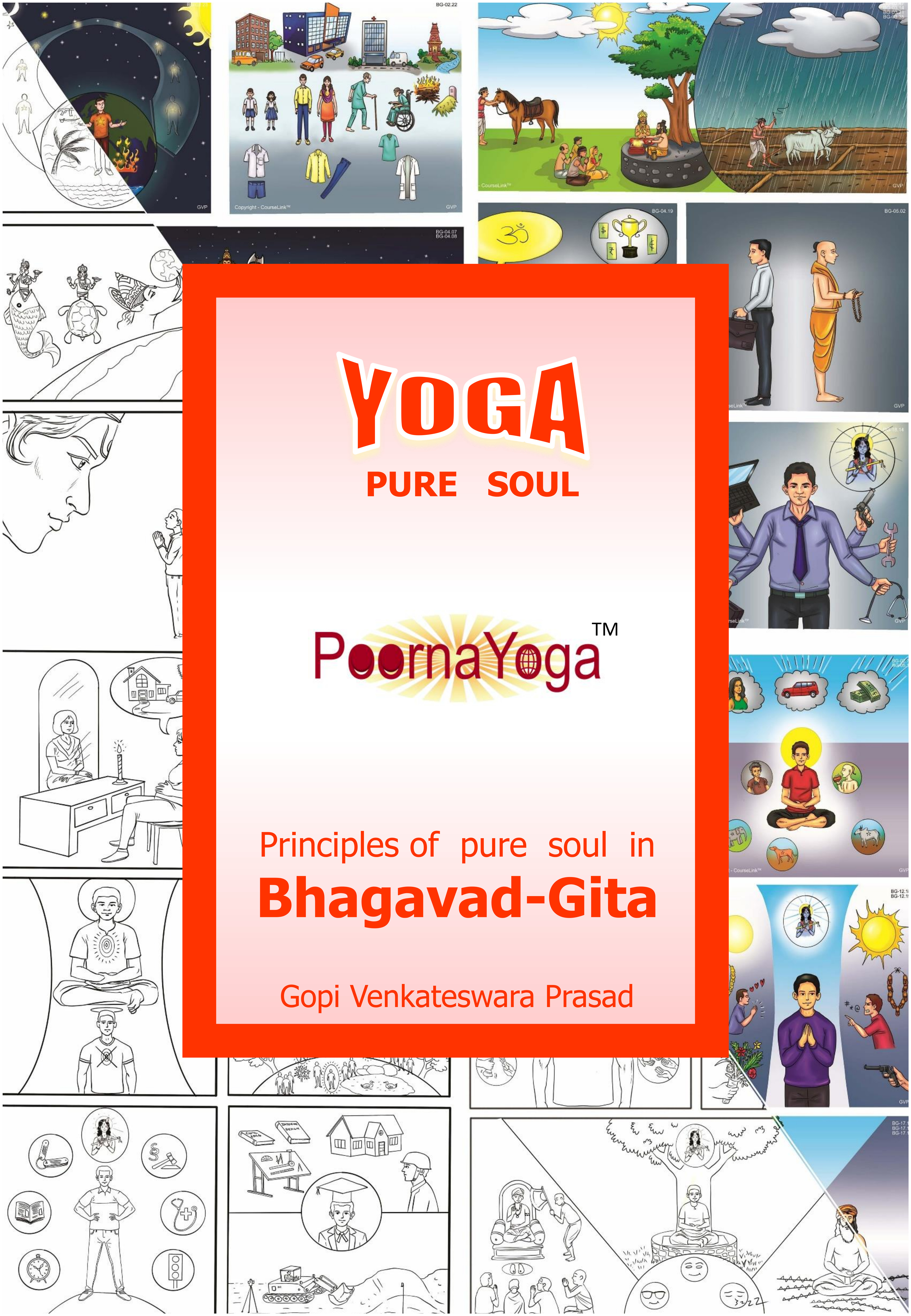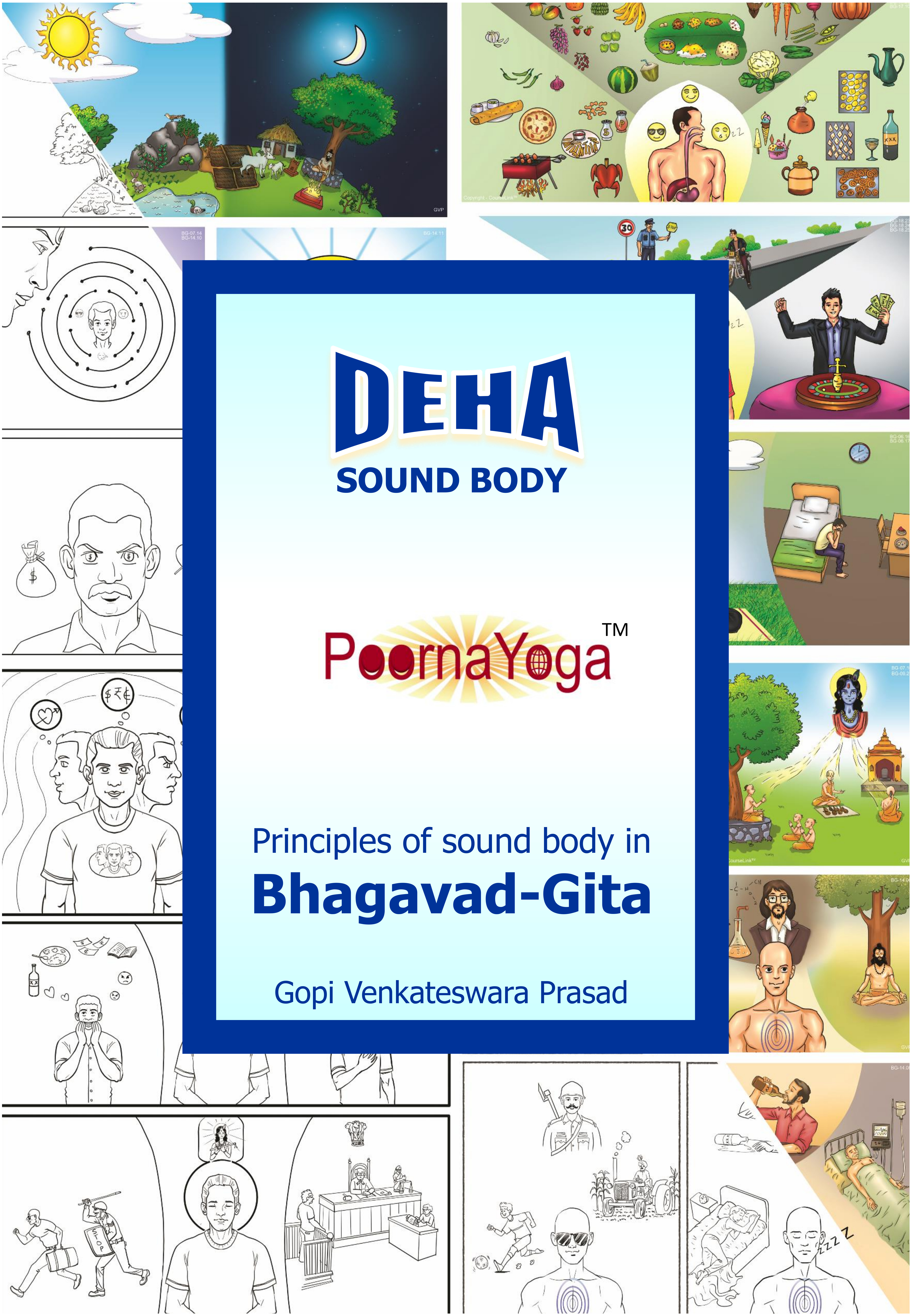 ‘Gita Vidya Peetam’ had been offering the ‘PoornaYoga program’ in India, Europe and America since 2020 under four courses namely DEHA, GNANA, YOGA and JEEVA to provide the eternal wisdom of Bhagavad-Gita and Patanjali-Yoga for the modern-day life. All four courses are available in a single textbook. Each course has a separate workbook. PoornaYoga textbook and workbook are essential to participate and complete the program. The textbook provides an introduction to the theory and free access to the E-Class videos. Workbooks enhance the understanding and examine the progress of the student through practical tasks and project work. After fulfilling the workbook tasks and project work students shall receive the PoornaYoga course completion certificate from the Gita Vidya Peetam.